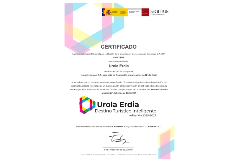 Urola Erdiak Helmuga Turistiko Adimendunaren (HTA) Diagnostiko Txostena eskuratu du, Basquetourrek egina eta SEGITTURren metodologia eta baliozkotzea oinarri hartuta. Txosten honek HTA ereduaren ezarpenari hasiera eman zaiola egiaztatzen du eskualdean.